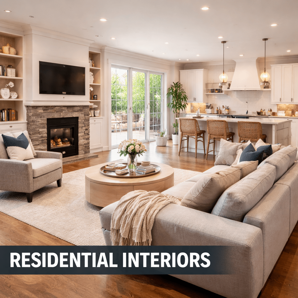 We design and execute residential interiors for homes, apartments, and villas that reflect comfort, style, and functionality