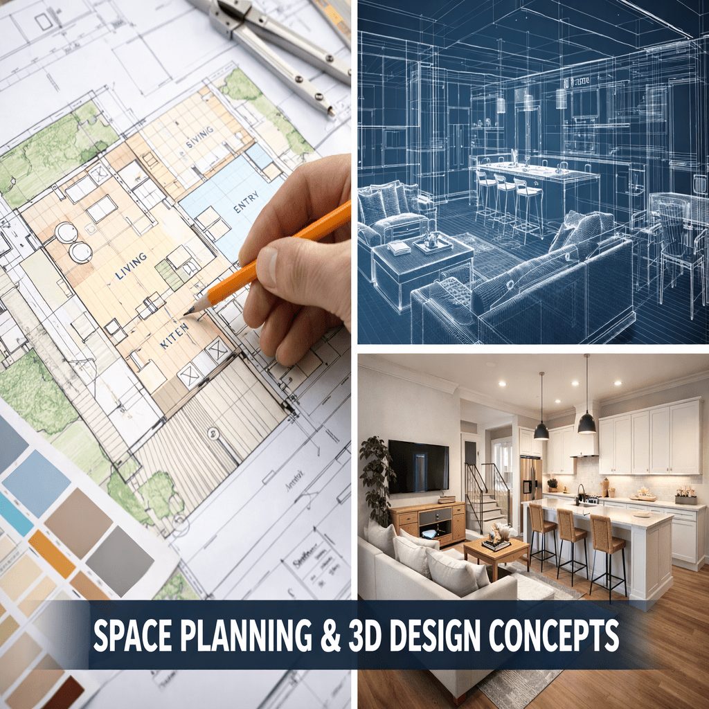 We offer smart space planning and detailed 3D design concepts to visualize your interiors before execution.